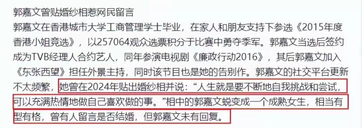 可郭嘉文这边,偏巧照旧那种一贯的千里默。她没出来诠释,也没顺遂发句什么“新的启动”,像是特意不让这件事长出更多枝节。倒是她身边一又友被问到时,说法依然很克制,鄺洁楹只酬报说,世界频频会蚁合,以她所知,郭嘉文“齐过得几好”,其余就不便捷再讲了。