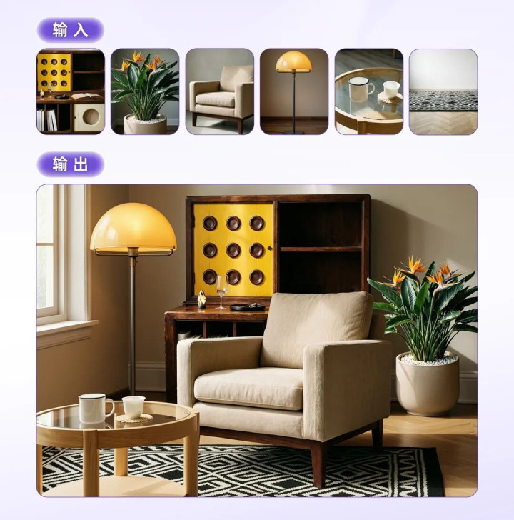 其还辅助多主体一致性:最多辅助9图合影、电影海报及产物组合图,可保持作风与特征的调治。