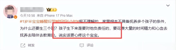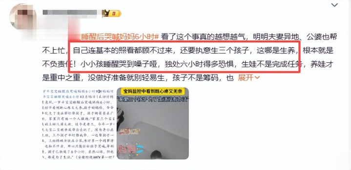 还有网友说,多子多福的念念法没错,但也要聚拢自己的本色情况,养娃不是完成任务,而是要对孩子的成长崇拜,没作念好充足的准备,就不该让孩子来承受大东谈主遴荐的恶果。
