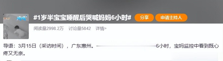 夜深刷到监控画面的时候,信服不少东谈主心里皆揪了一下,一个刚满一岁半的孩子,独自待在屋里哭喊姆妈,这一哭,便是整整 6 个小时。