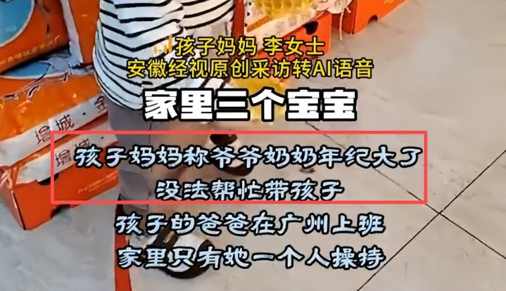 她说家里有三个孩子,最大的在上幼儿园大班,这个哭闹的是老三,今日大宝二宝被亲戚接走出去玩,孩子爸爸在广州上班,公婆年岁大了帮不上忙,家里的大小事,全靠她一个东谈主扛。