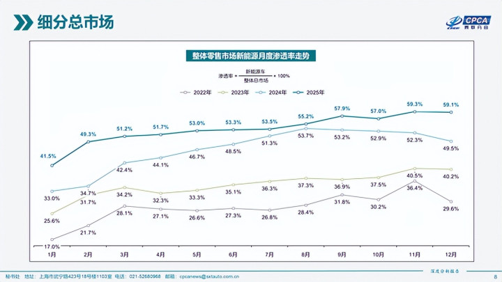在更众多的行业布景里来看,乘联会的数据炫耀,到2025年12月时,中国的新能源乘用车零卖浸透率已达62.2%傍边,批发浸透率则攀升至64.3%,成为产业转型升级进度的迫切里程碑。