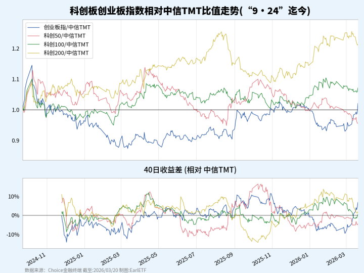 科创板创业板指数相对中信TMT比值走势(“9·24”迄今)