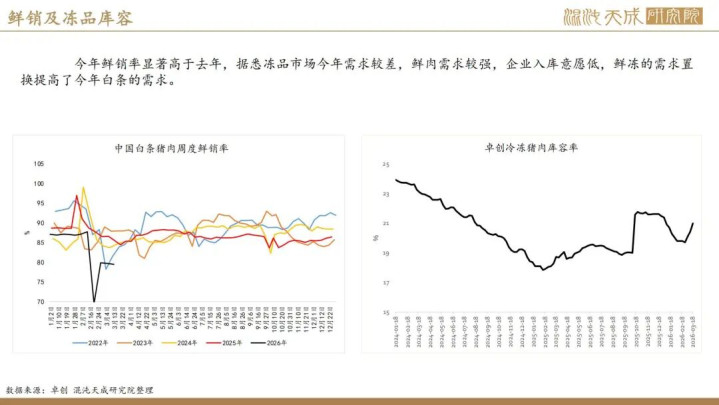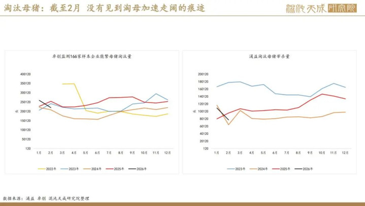 产能端,2月机构样本内能繁环比不竭增长,企业在猪价亏本的情况下增产能产效挤压市集,不外咱们瞻望3月运行能繁环比可能出现比拟显贵的下降趋势,密切宽恕淘母数据。据涌益数据,2月能繁:增多0.39%。2月份衍生端分娩配种节拍频频;销售端受春节休假影响,部分淘母积压未按频频节拍销售,导致总存栏仍在,但跟着春节后开工,陆续增多销售头数,放胆2月28日,能繁母猪存栏基数较上月微增。