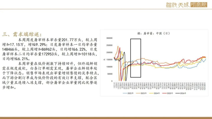 本周宰量在廉价刺激下握续回升,但终局鲜销需求很是疲软,白条订单刚需呈现,屠宰企业鲜销率处于下降景色。销售市集进展出宰量增销售慢的淡季特质,而卑鄙分割订单成为廉价阶段的灵验订单撑握,协调区域小数且勾通入冻撑握,部分屠宰企业宰量同比上风渐渐增多。