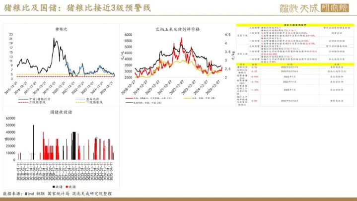 此外,2025年12月季世界能繁母猪存栏量为3961万头,为频频保有量的101.6%,市集产能满盈的近况仍未获得光显改善,肖似猪价握续走低,行业全体濒临较大谋略压力。网传,这次会议针对生猪行业发展被说起多项条目,除明确猪企调减分娩指标有关内容外,还条目隔绝集团企业逆势扩展、借机霸占市集资源,严禁二次育肥等投契操作;同期征战行业将生猪出栏体重稳步限度在120公斤傍边,贯注因结伙出栏对市集形成冲击,且明确要进一步融合中大猪统计数据口径,确保产能数据的真实性。