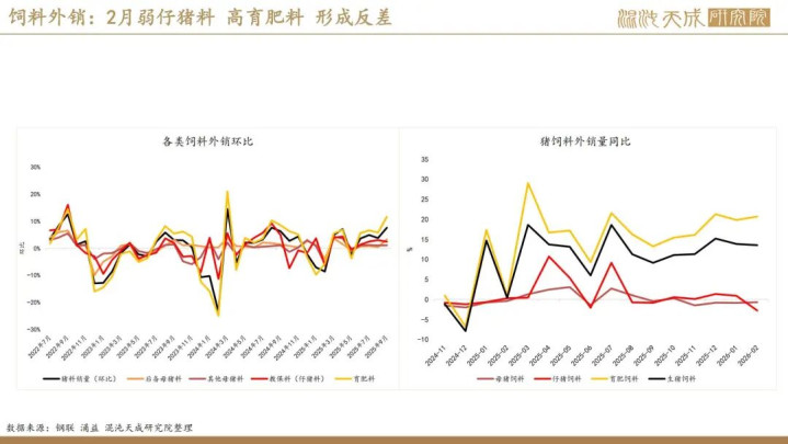 饲料端,2月仔猪料销量下滑,育肥料同比暴增,亏本景色下减仔猪,增重赌行情的情况被佐证。据钢联数据,2月仔猪料同比销量下滑2.77%,育肥料同比增长20.68%。