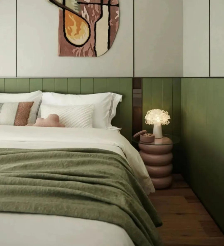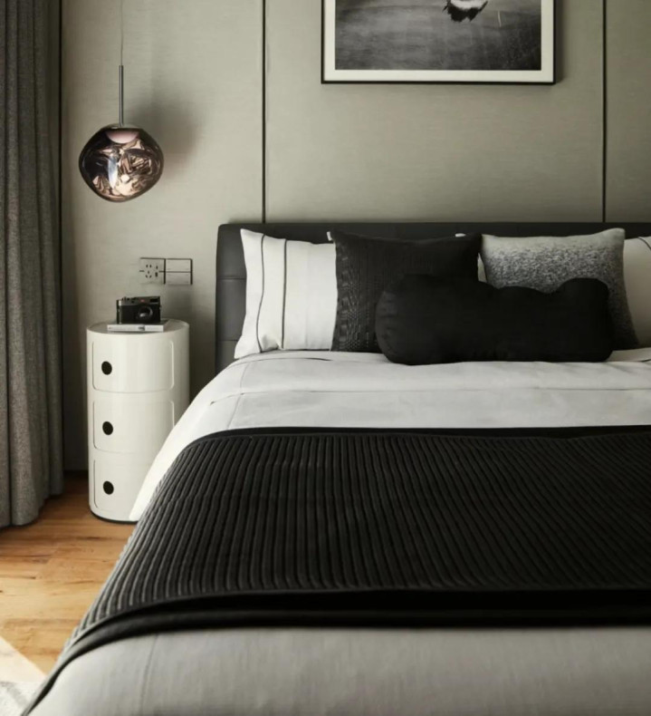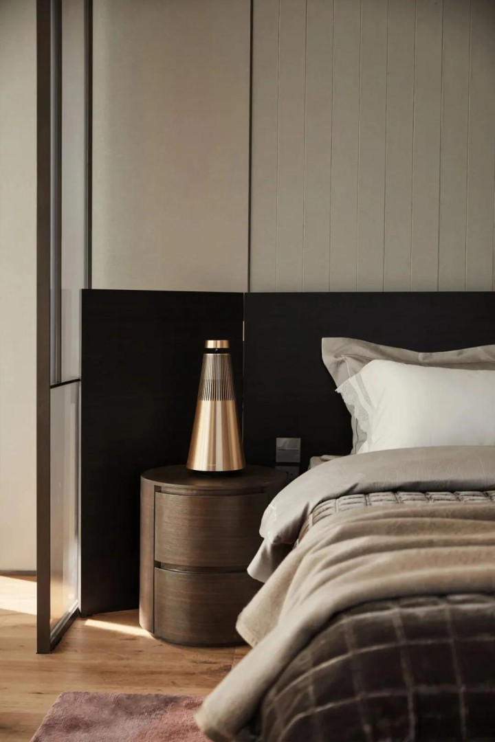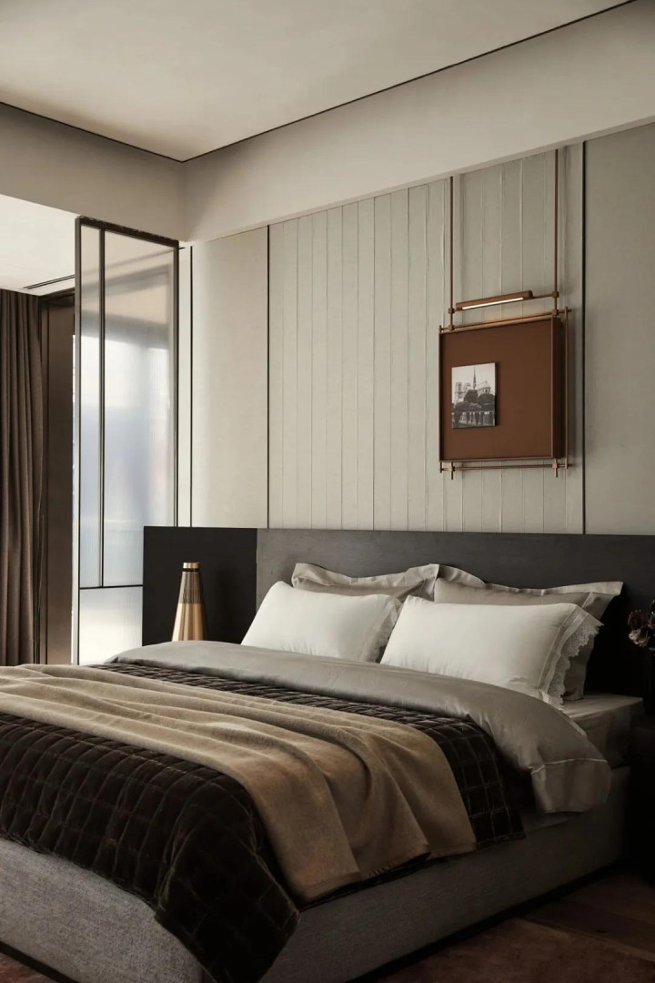 The master bedroom continues the minimalist palette, balancing openness with functional planning to maintain equilibrium between negative space and usability. Softness, depth, and rationality coexist, creating a stable and enveloping living environment.