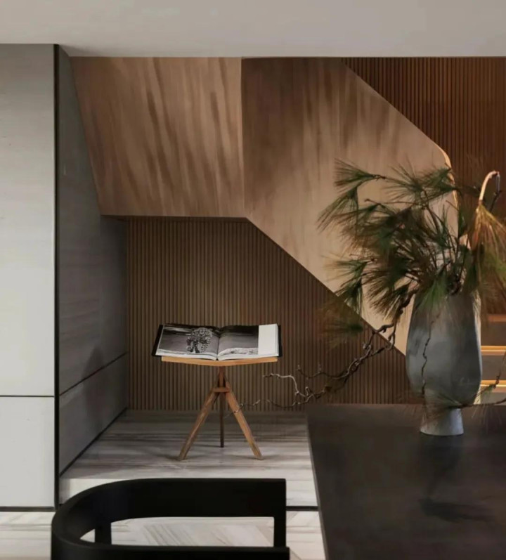 空间各个界面均与本领维度产生筹划。客厅在光影变化中造成雄厚的视觉焦点,既承载顾忌,也指向畴昔的发展标的。在相对静态的情景下,空间仍是保捏内在张力与捏续性。