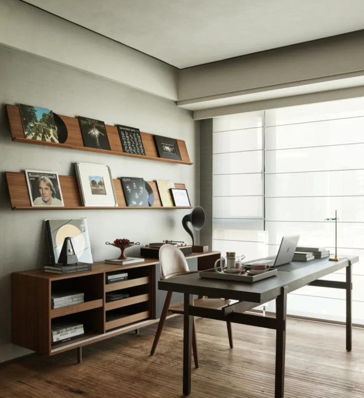 Located on the third floor, the study uses a black-and-white palette to create a calm and orderly environment. Artworks are arranged with precision, reinforcing spatial rhythm and encouraging a slower, more deliberate experience.