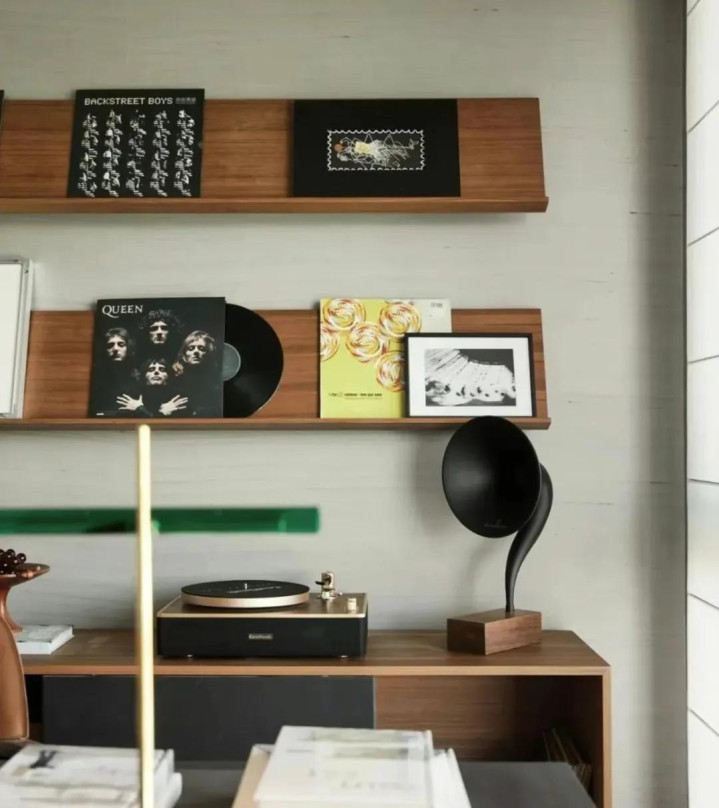 书斋建立于三层,以墨白色为主基调,营造振作且有次第的阅读环境。艺术品通过有序排列强化空间节拍,使东谈主在行走与停留之间感受到简约而雄厚的氛围。