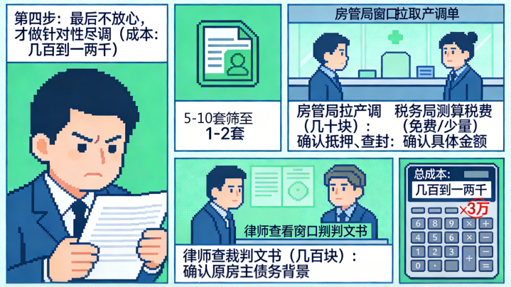 第四步:临了不省心,才作念针对性尽调(本钱:几百到一两千)