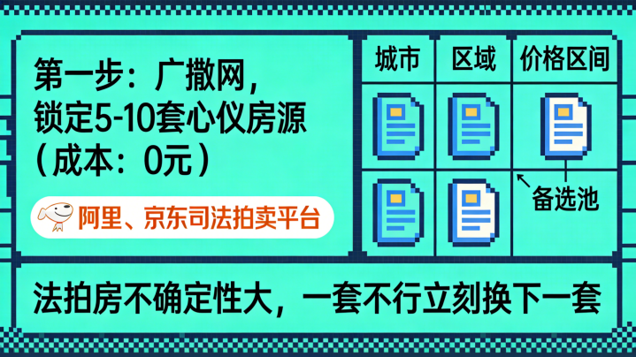 筛选逻辑:不要只看一套,要开荒“备选池”。法拍房不笃信性大,一套不成坐窝换下一套