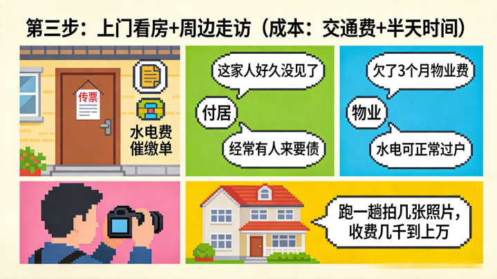 第三步:上门看房+左近访谒(本钱:交通费+半天时辰)