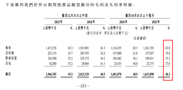 笔据港交所暴露的招股书信息,京新药业于2025年前十个月录得营业收入33.44亿元,略低于上年同期的34.38亿元。同期医药行业赴港融资慷慨慷慨,相较繁多仍未盈利的生物医药初创公司,京新药业以7亿余元净利润、近50%的毛利率的基本面,在“转板”登陆港股时具备一定上风。